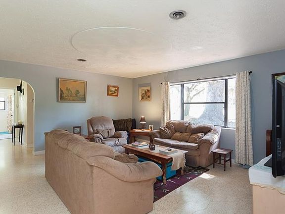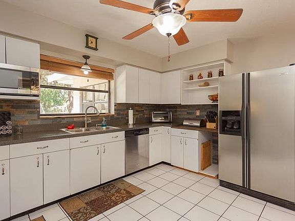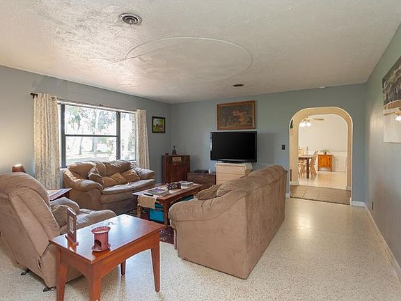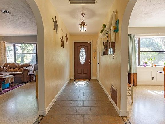 Looking for property close to town? Sitting on almost 3 acres zoned for horses, etc. with picturesque palms and mature oaks. This 3 bedroom two bath 2 car garage home sits on a DEEP private lot with home setback offering a HUGE circular drive and plenty of parking for RV, horse trailers, etc. This home has been updated with newer roof, BRAND NEW A/C, updated kitchen to include cabinets & appliances, updated windows, new tile in foyer, newer leaded glass front door, french doors, new baths w/ updated cabinets & tile flooring, solid surface countertops w/undermount sinks, hardware, master has a jacuzzi tub/Shower w/updated tile finishes, new front porch extension w/raised wood decking, brick pavers & arbor, & newer paint inside & out. Added bells & whistles -barn door accent, chair rail, wainscoting, updated trim & 5 1/4" molding, & ceiling fans. There is fencing & cross fencing for separate pastures & fenced in back yard space w/patio. There is a 2 stall barn w/large feed/tack room & a concrete slab for wash rack. The pasture areas are shaded w/gorgeous oaks. Offering a large main familyroom, spacious kitchen w/snack bar over looking the grand eat in/dining area, a second den/familyroom plus a large sunroom. All bedrooms are oversized w/plenty of storage. Also, large windows making this home light, bright & welcoming! No carpet offering either newer tile or terrazzo flooring. Two hot water heaters & tangelo, lime & grapefruit trees. Such a well-cared for & updated home! Home Warranty included!