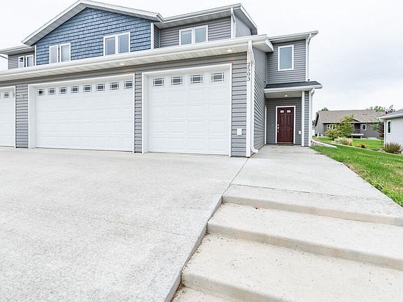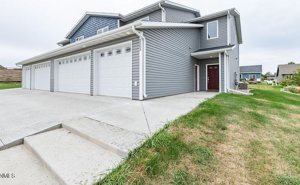 Welcome to Meadow Ridge! Conveniently located in Northwest Mandan, this two-story twin home has 4 bedrooms, 2.5 bathrooms, and 2,351 SF of open concept living. Features on the main floor include large grand entrance with an oversized chandelier, laminate flooring, quartz countertops, tile backsplash, stainless steel appliances, bench and hook system, walk in pantry, and a 1/2 bath. The upper level has 4 bedrooms, 2 full baths, and a laundry room. The Primary bedroom has an on-suite bathroom which has a 6-foot bathtub, double sink vanity, and large walk-in closet. Other features of the home include: finished yard with sprinkler system and attached heated 3 stall garage with floor drain. Taxes and specials are incomplete. Buyers agent to verify. *Agent/Owner*