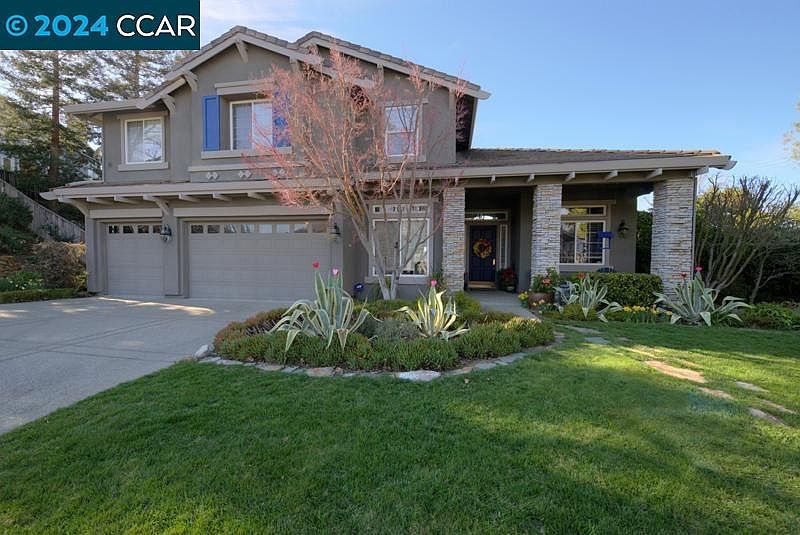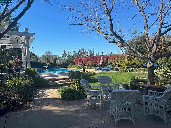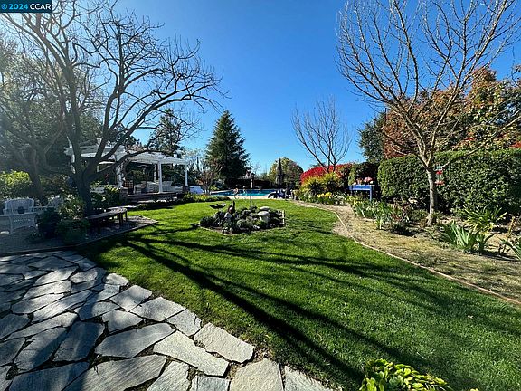 Enchanting "Sunset Garden" grounds surround this fabulous house in Trails neighborhood! This five bedroom home with volume ceilings includes an offfice downstairs and a bonus room upstairs! A place for everyone! The spacious Island Kichen has lots of storage space, a walk-in panty and is open to the family room with views of the incredible backyard and pool. The spacious primary suite has a large sitting area and two walk-in closets and views of the private yard. Two of the large bedrooms upstairs share a bath and the other bedroom is a suite. Recent improvements include, new hardwood flooring, new carpets and most interior painting.The private backyard features lush lawn and gardens, fruit trees and a scenic easement. Prime location and unbelievable setting, close to Livorna park, hiking trails ,Award wining schools and Roundhill Country Club. Just minutes to Alamo Plaza and downtown Walnut CreeK! Great house and great neighborhood! Note: 3 car garage with the 4th bay enclosed as a workshop. PENDING SALE