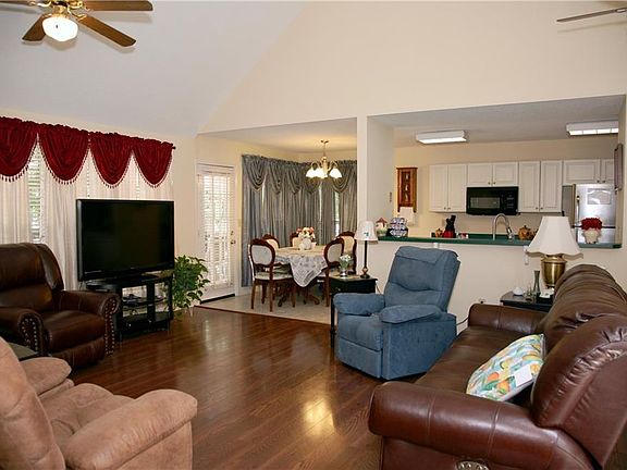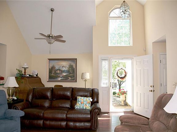 Charming 3 bedroom 2 bath one level home . Open floor plan with cathedral ceilings. Family room has a fireplace with gas logs. Plenty of cabinet and countertop space. Eat in kitchen. 2 car garage. Deck that overlooks wooded back yard. Back yard is fenced.