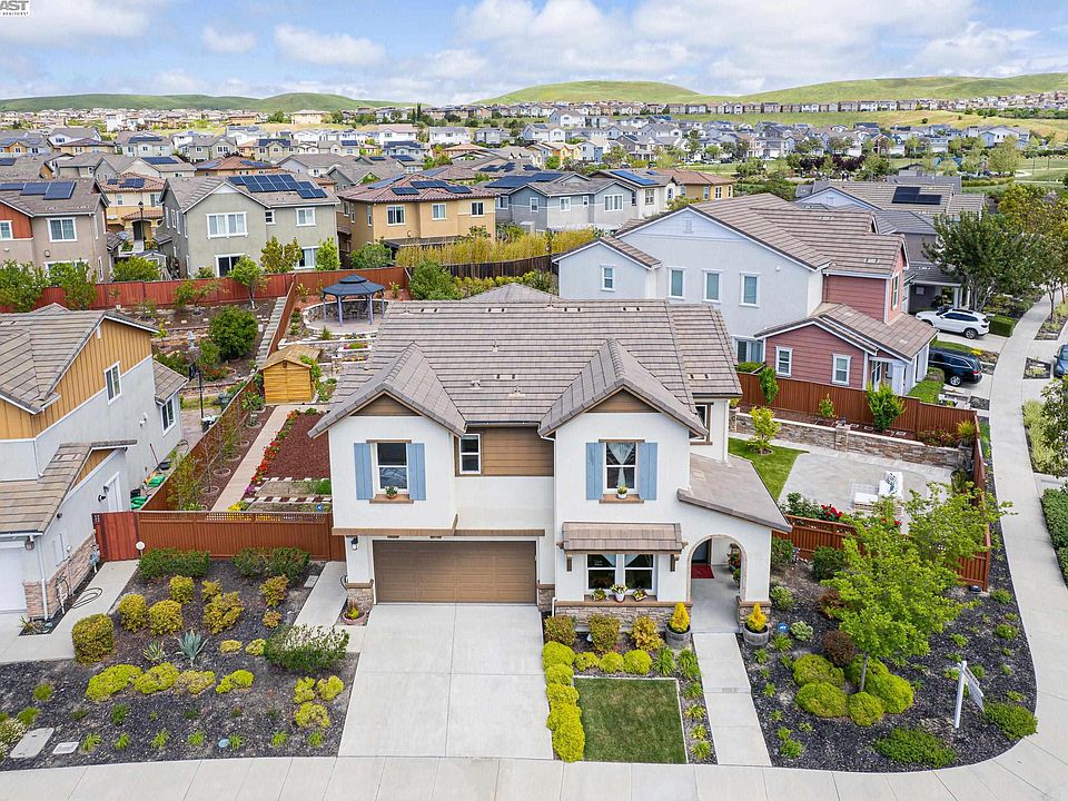 This is a beautiful & artstic home with premium corner location of Jordan Ranch commuinity at this Dublin . It built by brookfield Homes on end of 2014 , total 5 B/4B 2G , 1b/1B ground floor & master bed/bath with other 3 beds/2baths upstair with large loft area & high quality carpet .There is premium dark walnut hardwood floor through ground floor & same color stair handrails with high ceiling & bright windows ,premium marble kitchen island with all luxury home appliances ,large family room with office space on the corner with fireplace . There are comfort front & backyard decks with fully luxury designed & bulit with flowers & vegetable garden ,fruits trees ,pavilion, storage room & kids playground just finished on 2022 . It is near by outstanding elementary & middle schools & community park , the second Dublin Emerald High School will be open on earlier 2024 & only 2 miles away. there are city & mountain 's view around the sweet home here , there is 1--4 miles go to larger Shopping Plaza , SF Premium Outlet, Pacific Pearl Asian Plaza, hospital , Bart Station & 580/680 Hwy..
