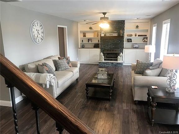 What an amazing buy for this remodeled Matthews home. Swing (swing stays) on your full rocking chair front porch typical of a Carolina home. All new luxury vinyl plank flooring throughout first and second floor. Beautiful stone fireplace with build in bookshelves, popcorn ceilings removed, fully renovated and stunning kitchen with glass doors and stainless steel appliances, gorgeous stone back splash and granite counter tops! Large master suite, double sinks, soaking tub and stall shower with walk in closet. Situated on a cul de sac lot with so much privacy in the backyard with a huge patio for entertaining. There is even a pond with waterfall for your very own koi fish. The patio furniture stays as well as the backyard hammock and swing. You will be all set for relaxing and enjoying this property and yard. Great location near 485 for easy access but not to close to hear road noise. Also just a few minutes to downtown Matthews