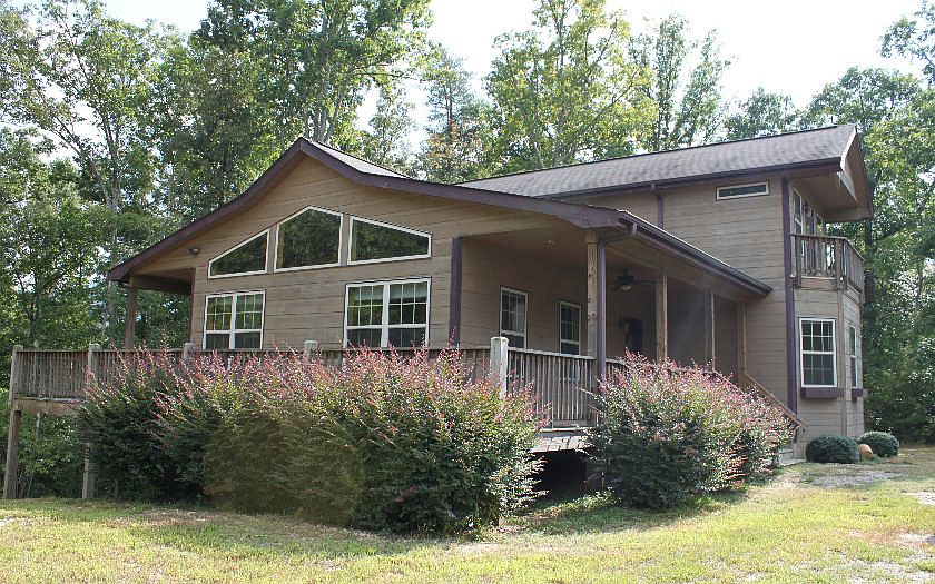 HOUSE CABIN with a YEAR ROUND MOUNTAIN VIEW! 3 bedroom, 2.5 baths. Master on the main, walk-in closet, shower and sep tub. Beautiful hardwood floors. HUGE Living room, nicely laid out kitchen with dining area and breakfast bar. Nice private back yard. Wrap around porch. Both bedrooms upstairs have a balcony. Gorgeous setting, so peaceful. Full unfinished basement with one car garage. Dual zone heating and air. Paved access. Great cabin in Young Harris - close to Brasstown Bald Mountain, Crane Creek Vineyards and Brasstown Valley Resort & Spa. 03/04/16