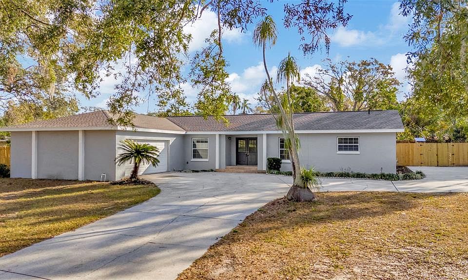 NEWLY RENOVATED including NEW ROOF! With an extra long driveway and parking pad this stunningly renovated single-family residence is situated on nearly half an acre. Bring your toys! Fresh interior and exterior paint. Step inside to find new luxury vinyl plank flooring and plush carpeting, recessed lighting, and large bedrooms, each equipped with ceiling fans for ultimate comfort. The kitchen is a true showstopper, featuring quartz countertops, soft-close cabinets with a convenient lazy Susan, a window over the sink, stainless steel and black appliances, and a breakfast bar perfect for casual dining. Both the primary and guest bathrooms showcase double vanities, adding a touch of luxury. Outdoor living is a breeze with a screened-in patio overlooking the massive sparkling pool, complete with a pool bath for added convenience. The expansive, fenced backyard provides plenty of space for recreation and privacy. This home is designed for both relaxation and entertaining, offering everything you need to enjoy the Florida lifestyle to the fullest.