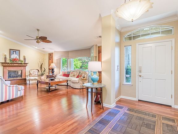 Get ready to fall in love with this STUNNING home in the exclusive community of CARRIAGE GLEN. Home boasts custom finishes thru-out such as Brazilian cherry hardwood floors, hand carved cabinetry, solid granite counters, 7 solar tubes creating bright spaces, retractable screens, new triple pane windows, LED lighting, & more *SEE DOCUMENTS Tab*. The home office has a private entrance & courtyard which would also make a perfect in-law setup. The landscaping is rich in color & beauty! It is like nothing you have ever seen with it's slate table for 12 amongst columns, waterfall, & even a furnished playhouse. Offering ample space for outdoor living and entertaining with plenty of room for seating and relaxation. The perfect blend of indoor and outdoor living. Short walk to Clover Creek Preserve