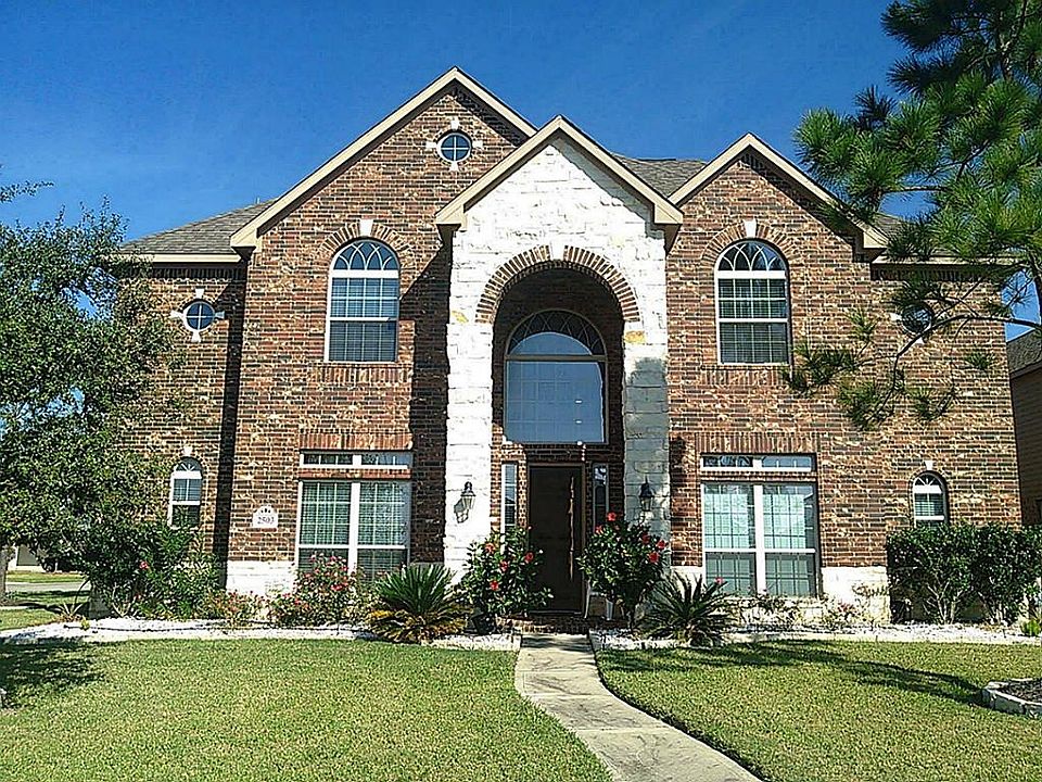 ONE OF THE LARGEST HOMES IN COMMUNITY! FORMER MODEL HOME. IMMACULATE! Very close to main gated entrance for quick access to TX288. If you love large, open, bright spaces with plenty of windows and 25 foot dramatic open floor plan, this is THE home for you! HUGE GRANITE KITCHEN with large ISLAND and lots of amazing features including stainless steel appliances and under cabinet lighting!2 fireplaces! Free custom blinds! NEW STOVE TOP, NEW RHEEM WATER HEATER. 2.5 detached garage. READY TO MOVE IN!