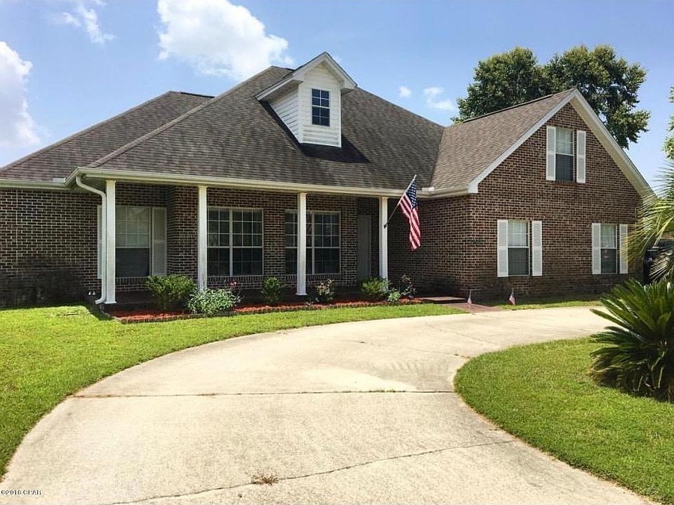 Lynn Haven brick home in Camryn's Crossing with inground pool, side entrance garage, circle drive and large backyard with huge covered patio. Interior features hardwood flooring, quartz and granite counter tops throughout, living room with built-in, custom cabinets in kitchen with stainless steel appliances and island. Master bedroom has tray ceiling, walk-in closet (built-in storage), whirlpool tub, separate shower, double vanity. Second level 4th bedroom (22X14). Additional bedrooms with shared hall bath. Dining room overlooking pool. Inside laundry with built-in storage. Additional storage under stairs. Exterior offers brick siding, inground pool, large covered porch with ceiling fans, side entrance garage, circle drive, privacy fence, re-use water for sprinklers. Subdivision has landscaped front entrance, sidewalks, street lighting, underground utilities. Click picture for photos, virtual tour, homes website, and additional information. All ages, sizes, square footages, school zones, lot sizes are approximate and must be verified by owner.