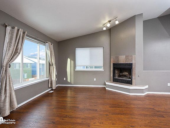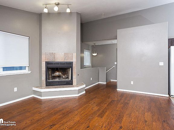 This spacious townhome with a modern, open concept floor plan is conveniently located near JBER, shopping, dining and entertainment. The sizable master features a large walk in closet. Enjoy the vaulted ceilings, ample cabinet space and breakfast bar in the kitchen that opens to the living area with wood burning fireplace. The back yard is fully fenced, complete with access from downstairs.