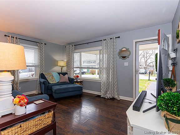 Welcome to this beautifully remodeled 3 bed, 1 bath home located conveniently to shopping and community park in New Albany. Home is situated on a beautiful corner lot. Gorgeous kitchen remodel was conducted in 2019. Other updates to the home include new roof in 2021, updated windows before seller purchase home, bathroom renovation, full walk-in closet added. Closet system can be removed for more space in 3rd bedroom. Large spacious fully fenced back yard with small pond. Partially finished basement for extra living space. You won't want to miss out on this one!!