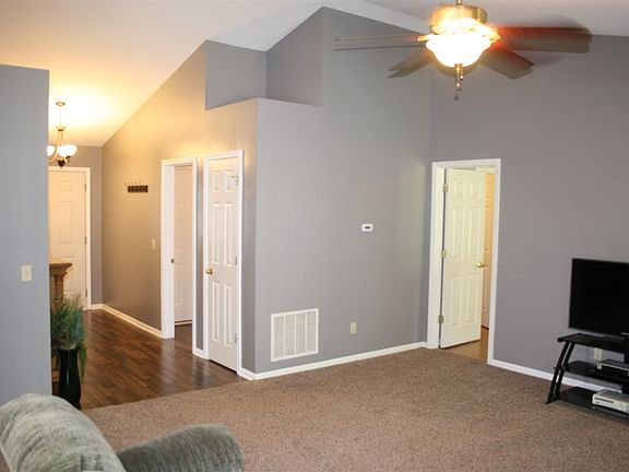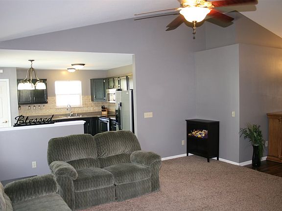 Must see! This split floorplan, open concept 3 bedroom/2 bath home is loaded with upgrades. Home features cathedral ceilings with plant legdes in the large 18x16 great room AND 16x14 master. Open eat-in kitchen features mosaic backsplash, separate built-in pantry, and all kitchen appliances are included. Laminate floors in entry, master, and separate laundry room. Nice location on a lot with mature trees backing up to wooded area. Enjoy the fire pit with some privacy. Updates include new carpet, new interior paint and updated lighting throughout. This one won't last long. Call today to schedule your private showing.