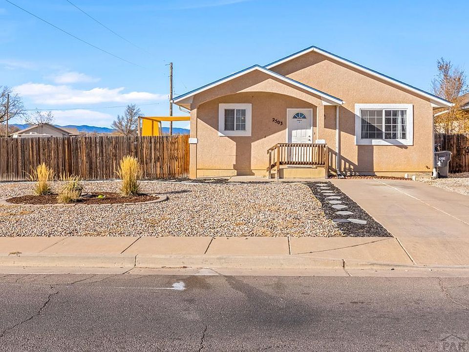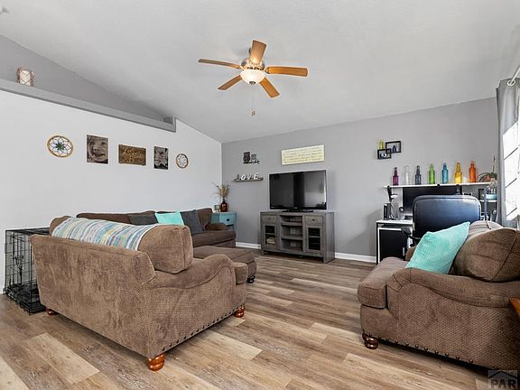 This lovely home on the west side of Pueblo is ready for you to move right in! Upon entering, you will be greeted by a generous living space, including a central kitchen with newer appliances and updates throughout the home. One remodeled bathroom is easy to access close to the main living area. Bedrooms are toward the back of the home, including a Master suite with it's own bathroom and two additional bedrooms across the hall. The fenced yard is accessed through the kitchen dining space and features an over sized shaded patio for gatherings, a basket ball pad, an 8x8 shed, and plenty of room still left for pets, a garden, fire pit, or what ever you'd like to imagine. There is a gate on the south side of the yard to provide access for additional parking. The sellers just had a brand new roof put on, and the water heater is two years old. This is one you've got to see right away!