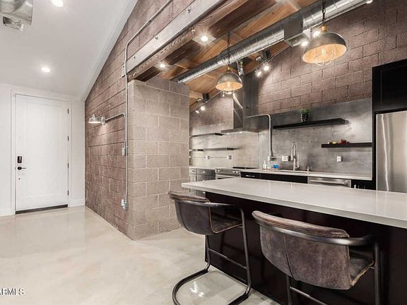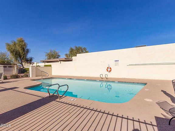 Stunning Modern Industrial Townhouse with Contemporary finishes. One of a kind by Architect Bennie Gonzalez. Start with the beautiful brick paver courtyard, the perfect space for entertaining! Block walls, open 16 ft ceilings, and gorgeous stained cement floors. The kitchen has beautiful quartz counters, SS Kitchen Aid appliances, breakfast bar seating, open shelving, and shaker cabinets. The spacious family room has a sandblasted wood vaulted ceilings and a cozy fireplace. There are 3 generous sized bedrooms and each have their own bath, and access to a patio.The second primary bedroom is upstairs, with a gorgeous bath and access to a private balcony with amazing Camelback Mountain and city lights views! Low HOA,Community pool,close to schools, shopping, dining, sports and the loop 101.
