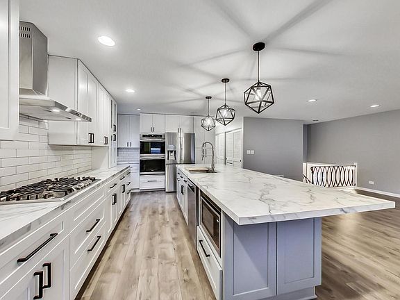 HELLO, stunning custom kitchen! It's truly the heart of this home. You'll love the massive island and abundance of cabinetry (68 doors & drawers!). Beautiful grey and white cabinets, gorgeous subway tile, premium stainless steel appliances including Samsung 4-Door Flex Refrigerator, Frigidaire Gallery double wall ovens, 5-burner gas cooktop and sleek stainless steel range hood. Lots of wonderful little touches, like the hidden pop-up electrical outlets in the island and the stainless workstation sink with cutting board, colander and second sink attachment(s). In addition to the updated kitchen, this 4-bedroom home also features two full bathrooms, both of which have been renovated. The upstairs bathroom features Kohler medicine cabinets, double vanity, gold hardware and lighting, skirted toilets (easier to clean) Bluetooth-enabled ceiling fan/light, and custom towel niches. Downstairs, pamper yourself in the luxurious 2nd bathroom. Oversized shower with a rainfall showerhead, heated marble floors (can be controlled from an app on your phone), bidet (w/ heated seat and remote control), Bluetooth-enabled ceiling fan/light, subway tile and skirted toilet. Throughout the home, neutral paint and oversized windows flood the home with light. Upstairs, the living room is open to the kitchen for easy living. Downstairs is an oversized family room where plush carpet and a large floor-to-ceiling wood-burning fireplace await. The only space that hasn't been renovated is the oversized (21'x10') laundry room. The previous owners used it as a workshop, but it could be transformed into two 10x10 rooms... leaving a laundry room and craft room/office/guest room, etc. Or leave it as-is and enjoy the HUGE laundry room! All of this overlooks Rand-Berkley Park, where you'll find playgrounds, soccer fields, baseball fields, and wide-open spaces to enjoy. Award-winning district 25/214 schools (Ivy Hill/Thomas/Buffalo Grove). Close to restaurants, shopping, METRA, IL-53, parks, pools, and much more! The listing agent is the homeowner.