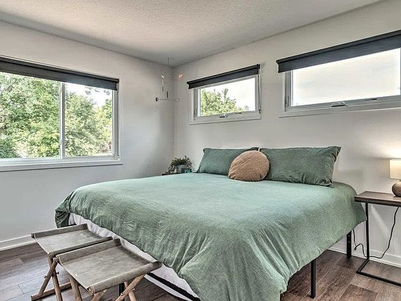 This newly built modern home offers an open concept design, maximizing space and light. The luxury vinyl plank flooring throughout adds a touch of elegance and durability. A standout feature is the beautiful cedar wall, adding warmth and character to the modern interior. Comes fully furnished. Sale includes Refrigerator, Microwave, Electric Range, and Dishwasher, 3 smart TVs, King bed/frame, Queen bed/frame, Kitchen Table and chairs, Sofa, 2 Bar stools, Desk, Desk Chair, and 2 security cameras.