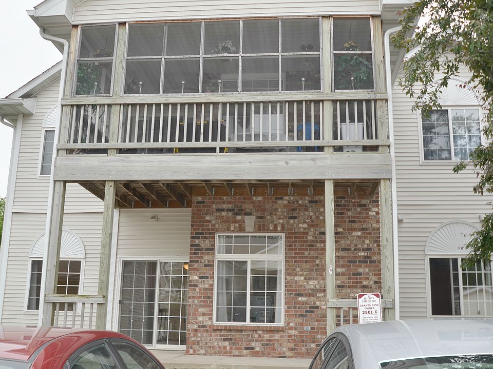 Grant's Cove condo, ground floor ranch plan with reserved parking spot in addition to a detached garage. Appliances including washer and dryer are included except the microwave is reserved. This spacious open plan has been well cared for and is move in ready. Two bedrooms and two bathrooms, dining area off of the kitchen and large living room with fireplace. Sliders lead to a large patio which could be screened for additional outdoor living space. This is a great value and a must see.
