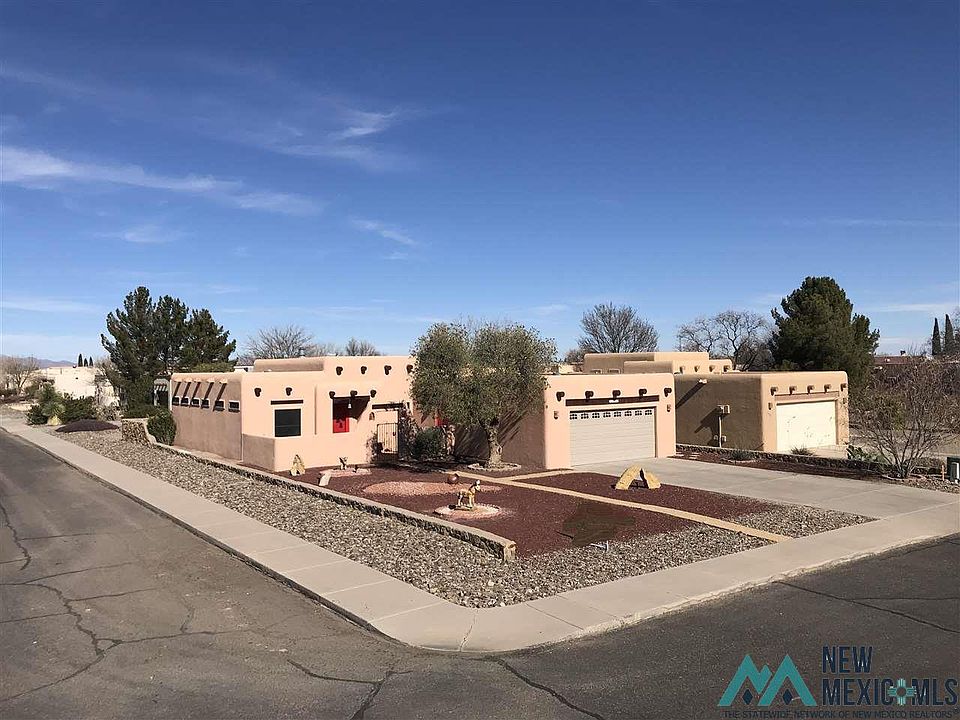 Beautiful home in the Country Club Estates with a 55+ HOA community, built in 1997 with approximate 1676 sgft, 2 Bedrooms, 3/4 bath, full bath, plus a 1 car garage. Open tiled living room with a gas fireplace, Libriray Kitchen with eat in bar, newer 2018 appliances range, refrigerator, dishwasher. Master bedroom w built in vanity, 3/4 bath, double sink. Second bedroom w tile, with an office area with lots of counter top space & cabinets. Laundry room with a 2017 washer & dryer, utility sink. The roof was re coated in October 2018, newer refrigerated central cooling & heating installed in July 2018. Easy access to downtown Deming,Columbus, Las Cruces, Siver City, Puerto Palomas MX, El Paso TX Airport.