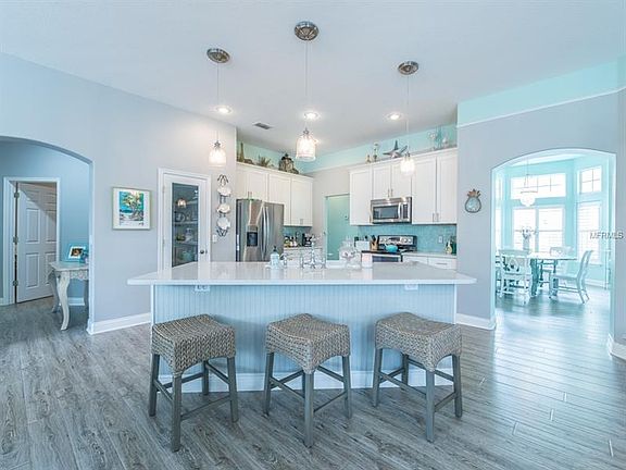 REDUCED AND PRICED TO SELL! Live every day like you're on vacation! This home has been completely refurbished into a coastal lovers dream. *NEW ROOF October 2016* Home features four bedrooms, three baths on 3/4 acre lot in the highly sought after Estates at Windermere gated community. Beautiful laminate wood floors throughout the home, coastal kitchen with shaker style cabinets, glass tile back splash, large island with sparkling quartz counter tops featuring a farmers sink, walk-in pantry, stainless appliances, separate kitchen nook looking out to completely resurfaced, re-tiled and brick paved pool/spa area with new tongue and groove lanai overhang. Spa is heated by gas. The large family room is bright and welcoming with lots of natural light and perfect for entertaining. The master bedroom has sliding glass doors with plantation shutters leading out to the pool area. The 3/4 acre yard features beautiful oak trees, a paved brick fire pit area and lots of room to play! This home is located on a majestic oak tree lined street in a wonderful community with tennis courts and a play park.