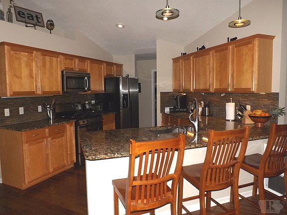 Great Family Home with 5 Bedrooms and 3 Full Baths on the South Side with vaulted ceilings, main level laundry, large 2 stall garage and more! Amenities galore with open floor plan, striking kitchen with granite counter tops and eat at island open to a large living room and formal dining with sliders to back yard deck. Great space with split bedrooms consisting of Master with large walk in closet, sliders to the back yard deck, and master bath with double sink, jet tub and walk in shower. Space for the family with 2 more bedrooms on the main and 2 in the lower level. Great Entertaining in the lower level with large family room with gas fireplace and a separate bar area with sink! Don't miss out on this quality built home with 2 x 6 construction and many upgrades!!!