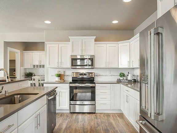 At 2968 square feet, the Vale home is not only spacious, but provides ample storage options. The incredible storage space begins with the oversized garage and practical mudroom entrance. This leads into the dining and kitchen area, which contains a large pantry, island and abundant counter space, perfect for entertaining or day-to-day life. The kitchen, adjacent to the great room features lots of natural lighting. The second level features even more space and storage, beginning with the versatile loft area that can turn into an optional junior suite. The expansive master suite opens with double doors and boasts a coffered ceiling. The master bathroom features a dual vanity, water closet, soaking tub and another oversized closet. Rounding out the home are two additional sizeable bedrooms with substantial closet space as well. Live in organized comfort, in a home perfect home for those needing extra space and storage. * Photos and floorplan are of a similar home. Upgrades and selections shown may vary. Contact Agent for specific details.