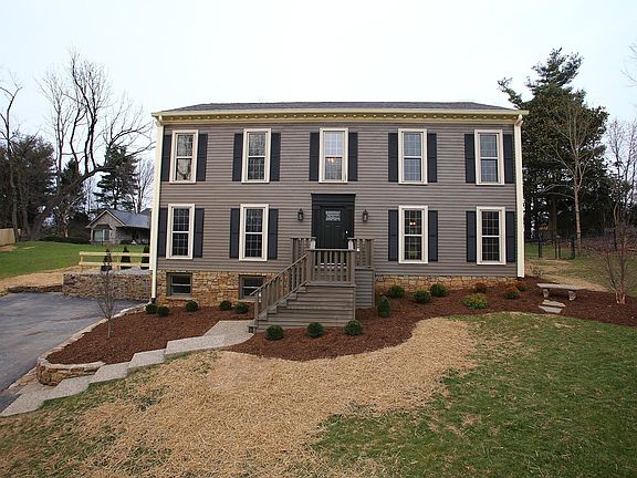 This fantastic two-story is located on a quiet cul-de-sac in Blankenbaker Woods. Having just undergone a 1st class renovation and remodeling, this home feels practically brand new. The 1st thing you'll notice when walking through the front door are the beautiful engineered hardwood floors; which are throughout the 1st floor. Going left from the foyer brings you into formal dining room which has sliding barn door access to the kitchen and can easily accommodate a family of 10 or 12 for dinner. Going right from the foyer brings you into the formal living room. The living room is open to the family room and kitchen behind giving this home a nice blend of modern open and traditional floor plans. The family room is highlighted by a gas fireplace and leads out to the deck. The gourmet kitchen is all new with white shaker style cabinets, granite countertops, stainless steel appliances, center island with breakfast bar, tile backsplash, and separate bar. Past the kitchen is a nice bonus room with built-in bookcases that is perfect for an office or library. All the bedrooms are upstairs. There is brand new carpet throughout the 2nd floor. The spacious master suite offers his and hers closets and a private bath with sliding barn door access, double vanities, tile floor, and whirlpool tub. Downstairs is a partially finished basement offering a large family room and unfinished laundry and storage room. The basement has been waterproofed and comes with a lifetime warranty. The 2 car garage is also located on the lower level. Out back is a fabulous new custom 25' x 12' deck with built-in seating. This home sits on a nearly half acre lot giving it one of the largest yards in the neighborhood. Additional updates include: all new baths, new plumbing fixtures, new lighting, new water heater, and new roof.