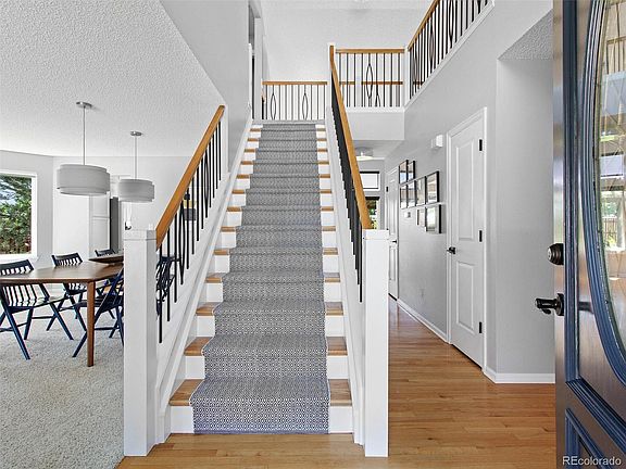 Nestled in a prime cul-de-sac and backing to the Northwest Open Space this move-in ready gem offers the perfect blend of tranquility, privacy, and modern updates. Situated on a spacious 10,000+ square foot lot in desirable Cedar Bridge this home provides amazing views of nature's beauty right from your backyard. A bright and inviting two-story foyer with hardwood flooring welcomes you into this special home. The classic floorplan is open, spacious and versatile. A striking two-story living room with custom gas fireplace and built-ins creates a captivating focal point, while the large dining area offers ample space for entertaining. The freshly updated eat-in kitchen features crisp white cabinetry, timeless subway tile backsplash, granite countertops, stainless appliances and upgraded lighting. Step through the kitchen and living room to access the impressive backyard, complete with a generous patio, a charming pergola, numerous garden beds, and abundant space for all to relish in the unique and private yard. Back inside the main level also offers a main floor study/optional 4th bedroom, a half bath, customized laundry room and access to the coveted 3 car garage. Upstairs you will find three bedrooms including the thoughtfully separated primary suite with vaulted ceiling, updated 5 piece bath, private water closet, and walk-in closet. The secondary bedrooms each have customized closets and shared access to the updated full hall bathroom. The finished basement expands the living and entertaining options, offering even more space to unwind as well as a fifth bedroom and a half bathroom perfect for guests. Enjoy the best of summer in the special Cedar Bridge community with access to the pool, clubhouse and tennis facilities. Located with convenient commuting in mind, this area provides easy access to I-25, US-36, and RTD's Park-and-Ride.