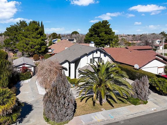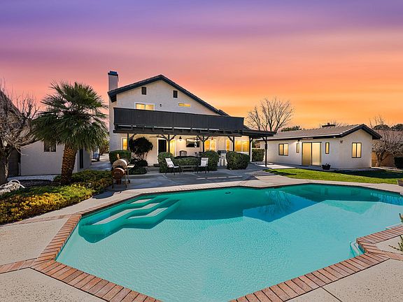 Designed for the avid entertainer, this gorgeous Lancaster residence is a must-see! A circular driveway bordered by lush landscaping, a weeping mulberry, and palm trees beckons you to discover a sun-soaked interior where neutral tones, lofty ceilings, and easy-care tile flooring are on show. Welcome guests into the carpeted living areas or enjoy intimate movie nights around the family corner's inviting brick fireplace. Whip up culinary delights in the cheerful kitchen with its host of appliances, ample cabinetry, and gleaming granite countertops.
