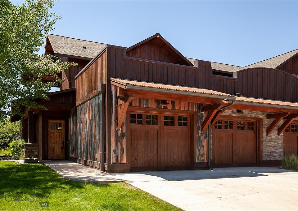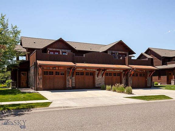 Sought-after Legends townhome at Bridger Creek Sub designed in a rustic elegant style both inside and out. This well-appointed home features 3 BR, 2.5 BA, 1,774 SF on two levels. The master bedroom is on the main level and has patio access to take in the outdoors. There are 2 guest rooms on the second level with one featuring a generous walk-out balcony for Bridger Mountain views. There is an additional covered balcony on the 2nd level that is perfect for beating the summertime heat and relaxing over a good book. Warm and natural wood finishes throughout with ample storage space. Radiant in-floor heat and a stacked-rock gas fireplace keeps it cozy and warm in the winter, while the central air keeps the spaces cool all summer. The two-car attached garage is finished and oversized. Never run out of propane with a plumbed gas grill on the main-floor patio. Close to walking trails, Bridger Creek Golf Course, the "M", Drinking Horse trail and the new Story Mill Park.