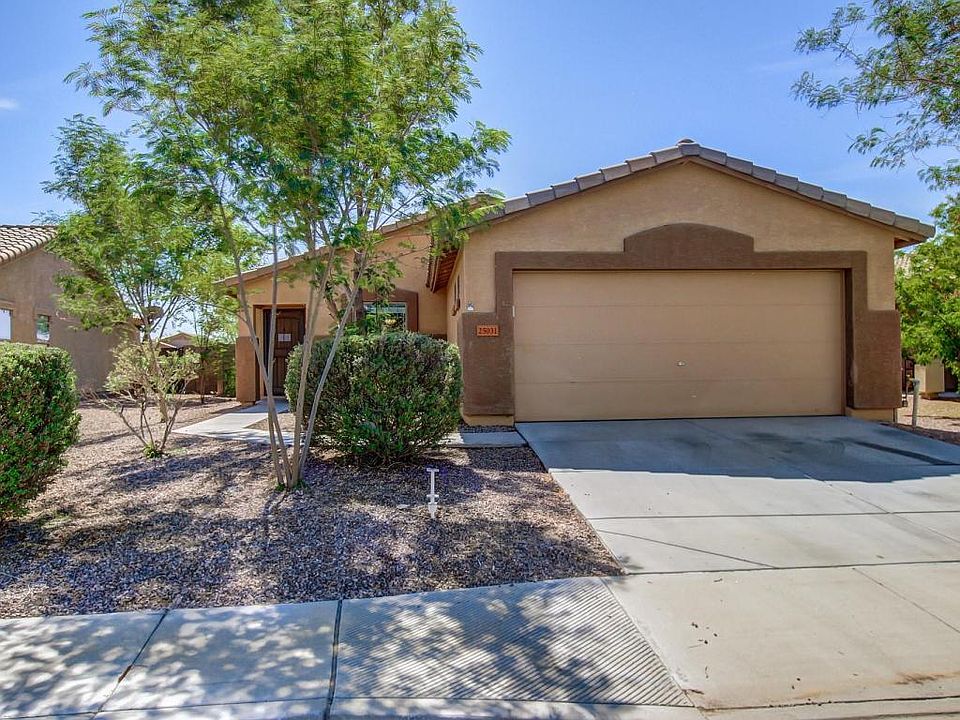 Relax in the shade of the covered patio in the backyard of this 3-bedroom, 2-bathroom Buckeye home! Upon entering, you''ll see a spacious living room and an open concept floor plan that allows you to move easily through the common areas. Dine at the breakfast bar or the dining area adjacent to the kitchen. Step into the Master suite to find a walk-in closet and a full ensuite bath with a shower and tub combination. Perks include an indoor laundry and a two-car garage. The home is just a short distance to the dining and shopping options at Sundance Towne Center, parks, the Sundance Golf Club, the trails at Skyline Regional Park, and I-10 and AZ-85 access.This home comes with a 30-day satisfaction guarantee, 180-point inspection, and 2 year extended warranty. Terms and conditions apply.