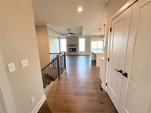 Prepare to indulge in main level living with the "Newberry" in Mize Hill, Lenexa's newest luxury, maintenance provided community. The Newberry By Lambie Homes (lot 28R) is a 3 bed, 2.5 bath reverse 1 1/2 story with a 2 car garage. Perfect for life on the go or slowing down to enjoy life, the Newberry has all the comforts of home. The entry way foyer greets you with a trayed ceiling and hardwood floors that flow into the open concept kitchen and great room. The great room is adorned with a trayed ceiling and a cozy fireplace, perfect for the cooler weather. The dine in kitchen area leads to a rear covered patio that is perfect for entertaining. The open concept kitchen keeps you engaged with your guests and makes entertaining a breeze with quartz counter tops, custom cabinets, spacious walk-in-pantry and stainless steel appliances. The primary suite has a vaulted ceiling enhanced with a beautiful accent beam. The ensuite primary bathroom exudes elegance with quartz counter tops, dual sink vanity and large tile shower with bench seat. The spacious walk-in-closet wraps into the laundry room for ultimate convenience. A powder room and large coat closet complete the first floor. The lower level creates the perfect space for family or out of town guests with a large rec room 2 generous bedrooms each with their own sizeable walk in closets. A bathroom with a shower/tub combination completes this amazing space. Move in ready so come and visit us today. Model/Office located at 24997 W 94th Terrace is Open Daily 12:00 - 5:00.