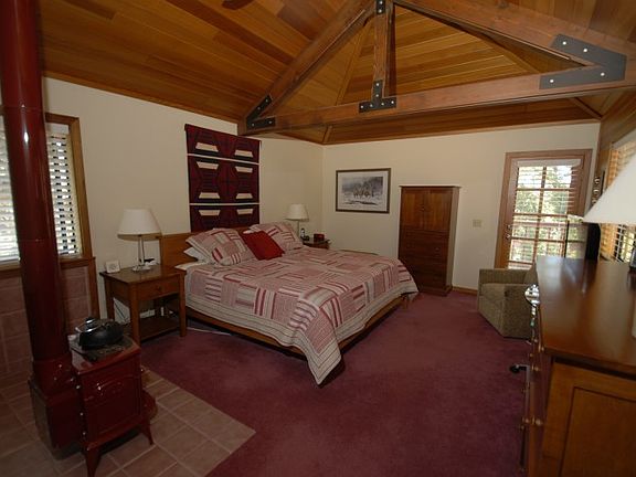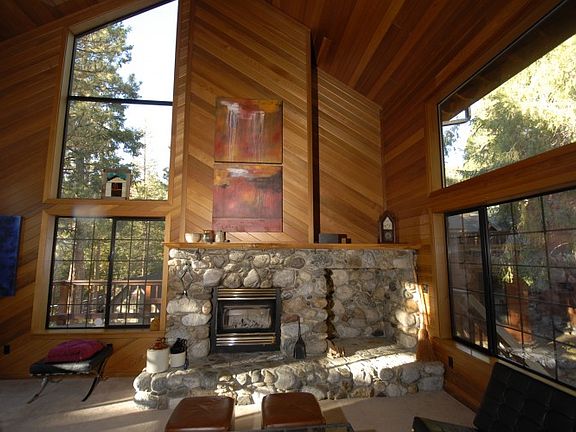 Exquisite Fern Valley home built with detail and quality foremost.This Idyllwild mountain home is an amazing value for the home. Underpriced and ready to move in, this home has super efficient dual forced air heat systems, high-end wood-cased, dual pane windows throughout, efficient custom fireplace and exquisite $10,000 wood stove in the master bedroom to keep this house toasty. This house can be a 5 bedroom or a 3 bedroom with a large studio w/bath plus an office. Large shop with power in the floors. Must see this home to appreciate all the amenities and quality. Expansive detailed wood decks complete with carved bears and an amazing mountain setting. Easy street access into the double garage with direct access to the home. Beautiful oversized laundry room complete with newer washer/dryer. Vaulted ceilings and through plan from kitchen, dining to living room make this a very functional space. Walk in Shower plus Jacuzzi tub in master. Don't miss a chance to see this Idyllwild gem.