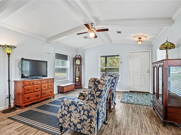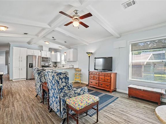 The home features a durable Hardy Board exterior, a new galvanized roof, and a cozy front porch—ideal for relaxing and soaking in the serene surroundings. The property also includes a 2-car carport and a charming gazebo, perfect for outdoor gatherings or quiet moments in the shade. Inside, you’ll find a thoughtfully designed layout that maximizes every inch, with fresh finishes and an inviting atmosphere. A sturdy shed on the property provides extra storage space, ideal for tools and outdoor equipment.