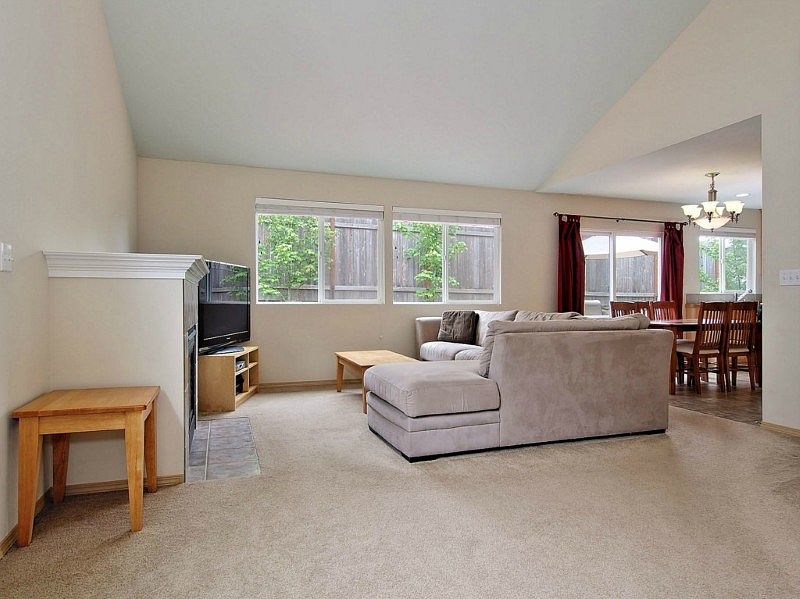 Meticulously maintained home with ideal great room layout. Vaulted ceilings, open kitchen with island & tile countertops, full height maple cabinets, brushed nickel hardware and fixtures, cat-5 wiring, gas fireplace, low maintenance yard with front yard sprinklers, back yard with large newer composite deck, all appliances incl. Convenient location near Canyon Park and Mill Creek, restaurants, shopping, freeway and busline. Community park/playground and award winning Northshore School District.