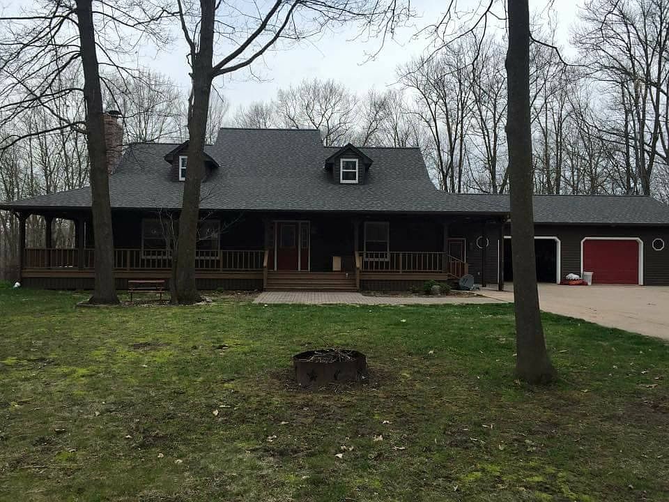 5,000 sq. foot home on 8 acres. Beautiful setting on a wooded lot. Country living yet close to town. Wrap around porch, heated 3 gar garage. 4 season porch facing the woods. Wildlife. Invisible Fence.