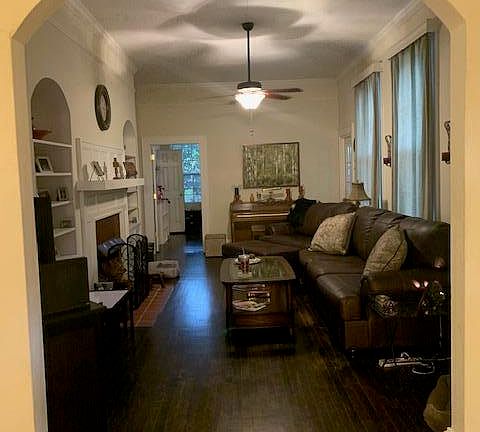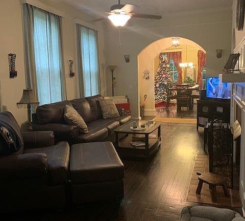 Lots of Character in this home. Features are 10' ceilings, original hardwood floors, and a huge Sun Room, with newly built-in cabinets and laundry. Other features are open living and dining areas with cozy fireplace and built-ins. Both bathrooms and kitchen have been updated. Shelving in one bedroom from floor to ceiling. Lots of storage. Large fenced back yard, 3-tier deck, driveway with parking and parking pad in the back. Wonderful yard for family fun. Some new windows across front of home.