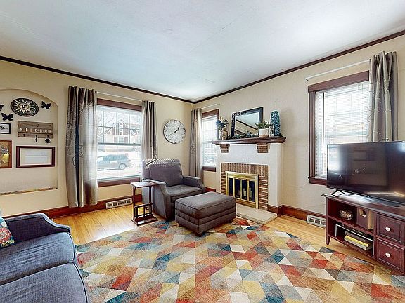 This charming, well maintained 1.5 story is located in a family-friendly neighborhood, close to schools, shopping, and trails. It features original refinished floors, a fireplace, and beautiful archway. The main level has two bedrooms and an updated bathroom. The finished second story can function as another bedroom or a secondary living space. The kitchen features newer stainless steel appliances and plenty of counterspace. The unfinished lower level has been recently painted and provides tons of great storage and endless possibilities for functional space. Property Improvements: - New Sink, Toilet, and Restored Flooring in Bathroom - 2023 - New Roof and Gutters - 2022 - New Vinyl Siding and New Furnace - 2021 - New Water Heater, New Lower Level Retaining Wall, Trees Trimmed - 2020 - New Siding and Roof on Garage, New Basement Windows - 2019 - New Fridge/Oven, Basement Waterproofing, Mudjacking, Patio Retaining Wall - 2017