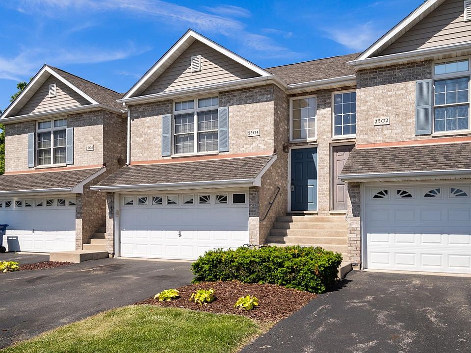 3BR/2BA brick townhome just minutes from park, downtown and NIU campus! Landscaped lot with 2-car attached garage, huge tiered backyard deck overlooking pond. Step inside to find modern neutral decor, vaulted ceilings and an open floorplan. Spacious great room with cozy gas fireplace. Adjacent eat-in kitchen complete with tile floor, custom cabinetry with crown and slider to deck. Convenient 1st floor primary bedroom with double closets and shared bath. 2 additional bedrooms in lower level along with 2nd full bath. Convenient location and an ideal price make this home a MUST SEE! Can be purchased with neighboring unit 2506 Alpha Ct. Attention Investors!