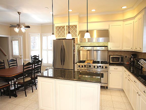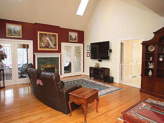 This gorgeous custom built home boasts a terrific floor plan and sits on a beautifully landscaped cul-de-sac lot with hardwood trees. Beautiful hardwood and tile floors, are just a few of the many exquisite features. The owners suite features walk-in closets and 2 luxurious bathrooms with ceramic tile. One bathroom you can enjoy a soothing whirlpool tub with a separate shower, the other bathroom has a private shower. The spacious kitchen offers stainless steel appliances with a Viking gas stove, granite counters and an island for relaxing and sipping wine, chilled from a wine cooler. Other highlights of this incredible property include a 2 story family room with a gas logs fireplace, great natural lighting from skylights and a spacious formal dining room. On the second floor there are 3 additional bedrooms. A large bonus room accessed by a separate staircase has a surround sound system. Outside, there is not only a screened porch but a tiered deck with a gazebo, so many choices for you to enjoy your backyard.