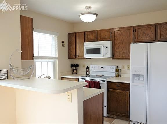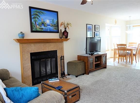 Enjoy the serenity of this end unit town home nestled in Deer Run. An inviting fireplace welcomes you into the living room; beautiful bay windows give way to natural lighting and a walk out deck from the dining room allows city and mountain views for morning or eveningtime enjoyment. This 3 bedroom 3 bath features a basement master bedroom with walk out patio and sitting area (optional use as recreation/family room).Utility room has plenty of space for storing bikes/boxes/or a creative place! Two upstairs bedrooms with Jack and Jill bath offer extra storage space and full windows for plenty of sunshine! Main level laundry off kitchen has extra pantry shelving. Located perfectly near UCCS; also shopping centers, restaurants, parks; with downtown just minutes away as well as I-25. HOA covers all exterior and landscaping for maintenance free living!