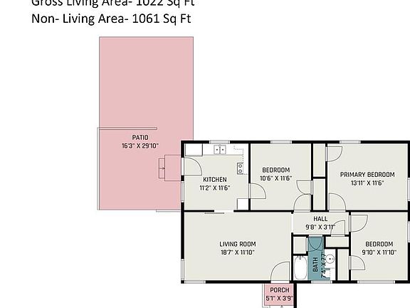 - Total interior livable area: 1,022 sqft