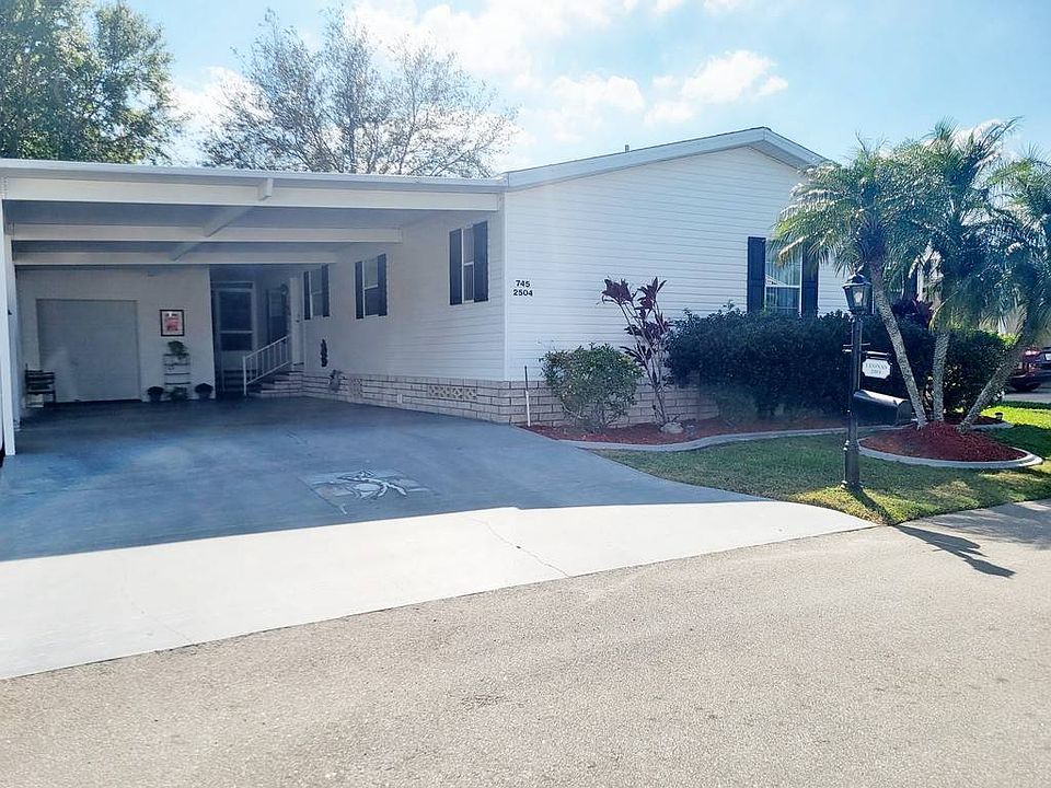 Homes in Four Lakes Golf & Country Club, a 55+ golf community, are on lot leased land. Owning the home, but not the land, you pay a monthly lot rent of $688 which gives you and your guest access to the amenities of the community. If you're looking for a home you will be proud to own look no further. With enough room for guests, whether they come just for dinner or stay overnight, this 2,378 sq. ft. home is for you. The open feel and the split bedroom floor plan will easily accommodate..................... Look at these features: * Open floor plan: view of kitchen, dining room and family room..... * Split bedroom layout...you have privacy with the guests staying on the other side of the home..... * Living room with natural light and statement-making, but removable, entertainment center..... * Den/Family room with large flat screen TV..... * Beautifully decorated kitchen with breakfast bar, brightened with skylight..... * Large open primary bedroom suite including dual sinks, spacious walk-in closet, well-lighted dressing table and lots of cabinet storage..... * Comfortably sized guest rooms with ample closet space..... * Laundry room & pantry off kitchen..... * 13 x 16 lanai with A/C, offering a beautiful view of open yard and gazebo..... * 14 x 14 shed/workshop with utility sink and paneled garage door..... * Deco driveway.................... THIS HOME IS PRICED TO SELL. Four Lakes Golf Club is an affordable, award-winning retirement community. It carries on that tradition with only the finest homes, amenities and service that is second to none. Anyone looking for an active retirement community in Central Florida need look no further............ Amenities include: 22,000 sq. ft. full service clubhouse; four beautiful lakes with marina; large heated swimming pool; whirlpool spa; 18-hole regulation golf course; billiard and game room; library & surround sound theater; 24- hour gated security; exercise room with sauna; fully equipped crafts room w/ kilns; putting greens and pro-shop; and access control gate with attendant. Pets under 40 lbs. allowed.