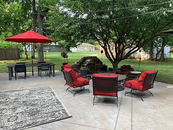 Move in ready with custom wood cabinets throughout. Large patio with disappearing pond waterfall, natural gas fire pit, industrial string lights, custom outdoor shed, concrete pad and wiring complete for hot tub.