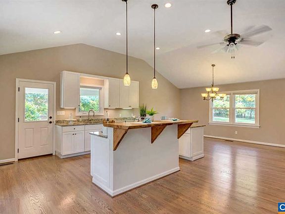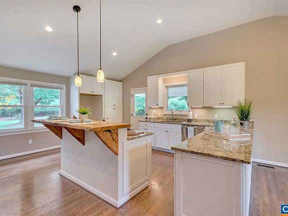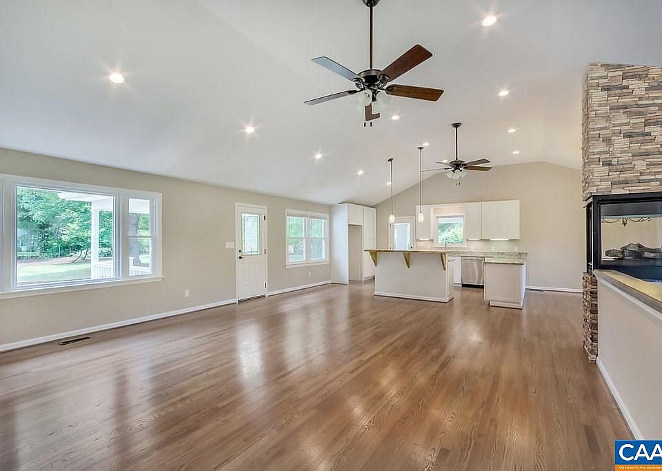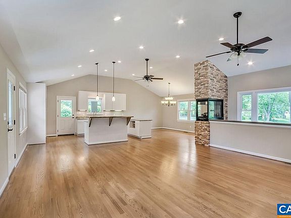 Beautifully renovated one level home in one of Charlottesville's quintessential neighborhoods. From the fixtures & hardware to the new insulation, no detail was spared! This home boasts a modern open floorplan w/vaulted ceiling in the great room, dining area & kitchen. Hardwood flooring is throughout the main level & you'll love the three sided gas fireplace w/stone facade. The kitchen gleans granite countertops, stainless steel appliances including gas cooktop w/downdraft. The master suite features 5 foot tiled shower & double vanity complete w/granite counter. The basement is perfect for entertaining & includes a wet bar, full bath, tons of storage & an oversized garage. Outside are covered front and rear porches overlooking the yard.