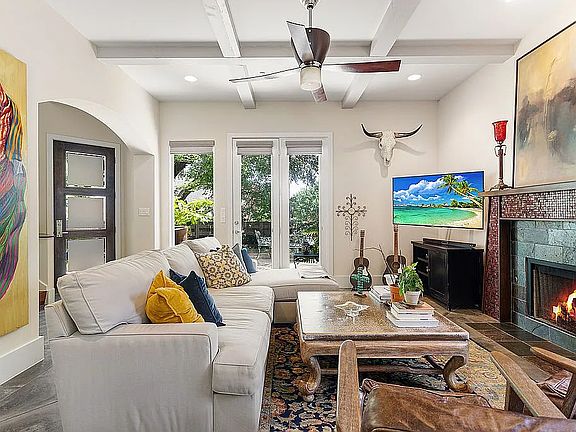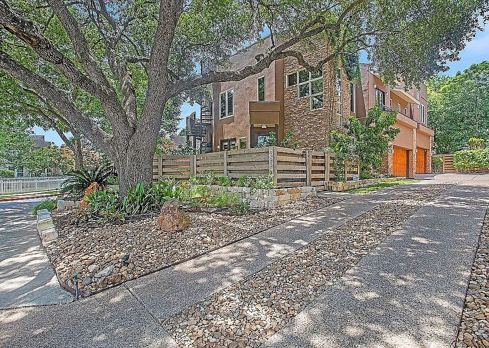 Stunning 3-bed, 3.5-bath modern home in South Lamar's Kinney Oaks neighborhood central Austin's premier pocket community. This 1,859 sq ft corner-lot gem offers privacy, style, and unmatched convenience on an oak-lined, winding street with crepe myrtle paths and two nearby creeks, ideal for scenic walks. Perched on a raised rock wall behind a majestic oak and rose garden, it boasts elevated views down the tree-canopied road into a private park across the street, while remaining secluded from passersby. Fenced front/back courtyards and a rooftop patio provide serene outdoor retreats. Downstairs: Open floor plan with cool gray tile (accent details), painted beams, abundant natural light via picture/casement windows, living room fireplace, half-bath for guests, and seamless kitchen flow featuring modern appliances, breakfast bar, pantry. Upstairs: Master suite with fireplace, ensuite bath (double vanity, walk-in closet), and tranquil vibe; all bedrooms have full ensuites. Use the third bedroom as an office for a stunning view of park greenery and crepe myrtle blooms from your desk. Flexible landing for desk/reading nook. Key perks: Attached 2-car garage with Tesla Wall Connector (EV charging) and Powershare (bring your own Cybertruck and have backup power up to 2 days; CT fits the garage perfectly). Central AC, gas heating, hardwood/carpet/tile flooring. Prime location: Walk to Loro; 5-min drive to downtown, Zilker Park, Barton Springs, SoCo, HEB, Whole Foods, Central Market. Emerging boutique hotels, retail, and restaurants blocks away on South Lamar. Walk Score 79, Bike Score 75. In Austin ISD (Zilker Elem, O Henry Middle, Austin High). HOA included. Available September 1 or 15, or October 1 contact for showing! HOA included. Renter responsible for all utilities. First month and security deposit due at signing. No smoking allowed. No more than 2 cats. Dogs under 30lbs only, not to be left unattended outdoors, certain breed restrictions apply.