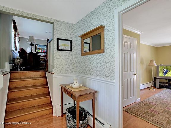 Spacious well kept Split in the heart of Ocean Township, on a corner Lot. Eat in Updated Kitchen with Tiled Floor, Granite Countertops + Stainless Appliances. Hardwood Floors in Living Room + Dining Room. Mounted TV in LR included. 3 Bedrooms upstairs w/ Wood Floors. Family Room w/ sliders to wood Deck overlooking private Fenced Backyard with Shed. Perfect for entertaining family + friends... Laundry Room + Full Bath off Family Room. on first floor. Finished Basement with 1 Large Room + 2nd Room currently being used as a Walk in Closet but could be office or separate playroom. Gas Baseboard Heat. Attached 1 Car Garage. Minutes to Schools, Area Beaches, Parks, Recreation, Shopping, Restaurants + popular Monmouth County Golf Courses. Desirable Commuter Location.