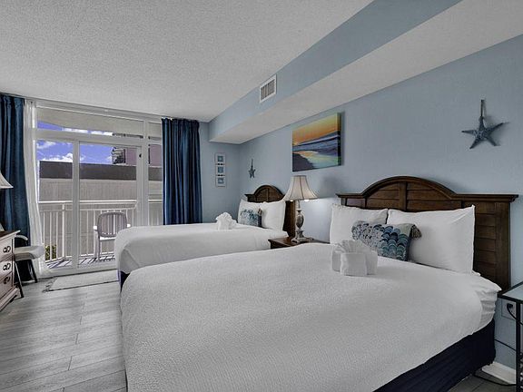 Experience modern and cozy accommodations at this condo within the Carolinian Beach Resort. This fully furnished vacation rental boasts panoramic views of the breathtaking beach through its wall-to-wall windows. Conveniently situated near Myrtle Beach's top attractions, such as a 60-mile stretch of beaches and renowned golf courses designed by celebrities, it promises an unforgettable stay. This sun-filled condo features modern furniture and attention to detail, with wall-to-wall windows offering amazing views of the beach and ocean. Enjoy the private balcony overlooking the ocean, perfect for sunset watching. The outdoor pool, kiddie pool, and seasonal lazy river provide ample opportunities for family fun, and direct beach access ensures you can indulge in days of collecting seashells or frolicking in the waves just steps from your door. Parking is available for 2 cars, with the parking garage located a block back from the property. With its prime location minutes away from Myrtle Beach's popular attractions like Broadway at the Beach and the Myrtle Beach Boardwalk, your oceanfront retreat is sure to be memorable. Stroll along the beachfront boardwalk, lined with arcades, souvenir shops, and restaurants, or visit the charming Family Kingdom amusement park and the SkyWheel, one of the tallest Ferris wheels in the nation. A new pier is currently under construction near the property, expected to continue through some time in 2026, which may result in occasional noise or limited access to certain areas. The city is also working on the pipes in the ocean, which may result in loud noise most of the time. Coastline Pest Control performs mandatory preventative treatments in every unit on the 3rd Tuesday of each month. For same-day late check-ins, you need to get approval before booking. Grilling is prohibited, with a penalty of $200 for violations. Bicycles, motorcycles, mopeds, and trailers are not allowed. No smoking is allowed in the unit or on the balcony, with a $250 fine plus cleaning costs for violations. No pets are allowed, with a $200 fine for violations. Gatherings of more than 10 people are not allowed and may be subject to eviction. House parties and illegal substances are strictly prohibited and grounds for immediate eviction. You must be at least 21 years old to book this property. Leaving the unit later than the check-out time will incur a late check-out penalty starting from $500. Upgraded internet with speeds of 200mbs/20mbs makes it perfect for remote work from the beach. A laptop computer is not included.