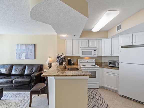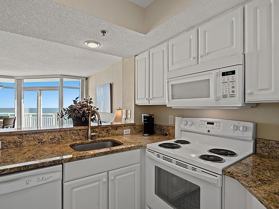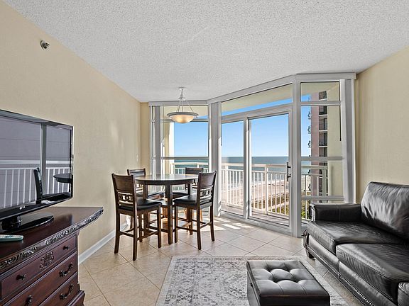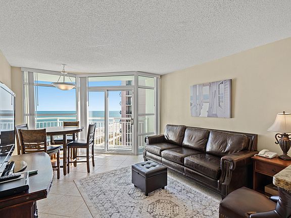 You won't want to miss this stunning unit! It has never been rented and shows like new. This condo has been beautifully maintained and updated. It has everything you would ever need in a vacation home or property to be placed on a rental program. Enjoy your morning coffee or evening beverage while enjoying the beautiful view of the ocean. Workout in the fitness room, swim in the indoor and outdoor pool, float the lazy river, and relax in the hot tubs. Working vacation? There is a business center for your convenience also! The unit comes with a washer and dryer and is completely furnished with several updates such as a new sliding glass door, flooring, blinds, refrigerator and tile throughout. The HVAC was replaced in 2021. Come see this gem for yourself !