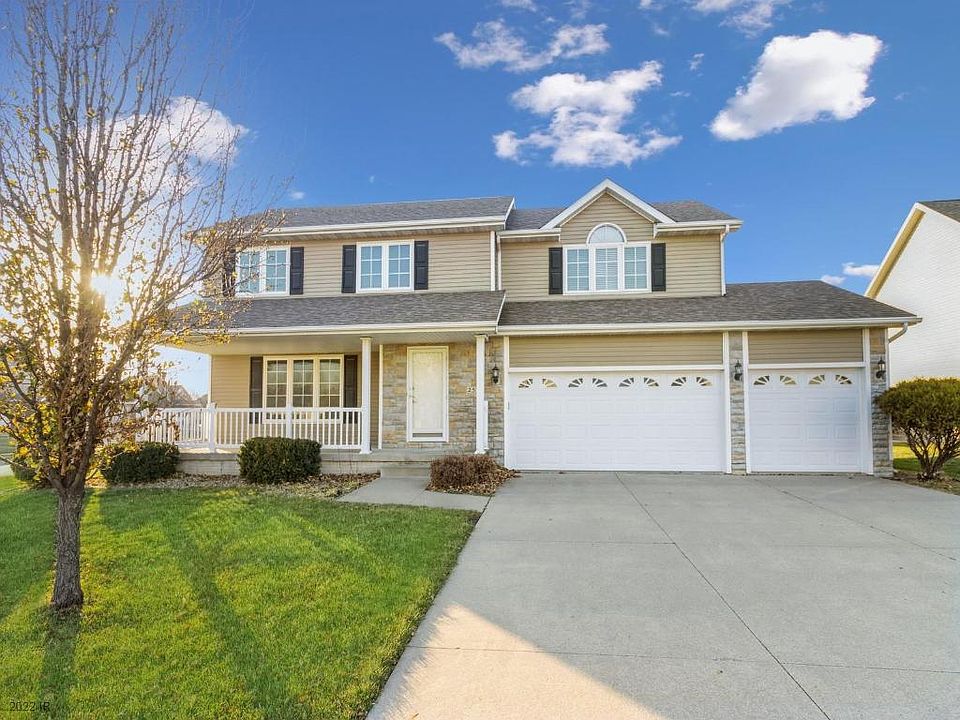 This spacious two story is set in a quiet neighborhood set on a large lot (.34 acres) that has a partially fenced yard. The home is neutrally appointed and will inspire you to make it your own. There is an open kitchen/dining area with an adjoining family room with a gas fireplace. The home has four bedrooms up with a large Primary Bedroom with a vaulted ceiling, en- suite bathroom and large walk- in closet. There are three other bedrooms off a large center hallway with a good sized second full bathroom. The partially finished LL has a bedroom with egress window, full bathroom and rec room with wet bar. There are tons of closets and storage areas. Three car garage. Close to bike trails and area attractions.