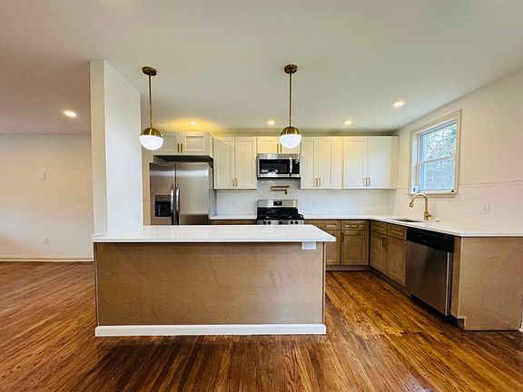 Shed for storageRecessed lightingPot fillerTwo-toned cabinetrySleek metal railingsOriginal hardwood floorsDurable lvp flooring