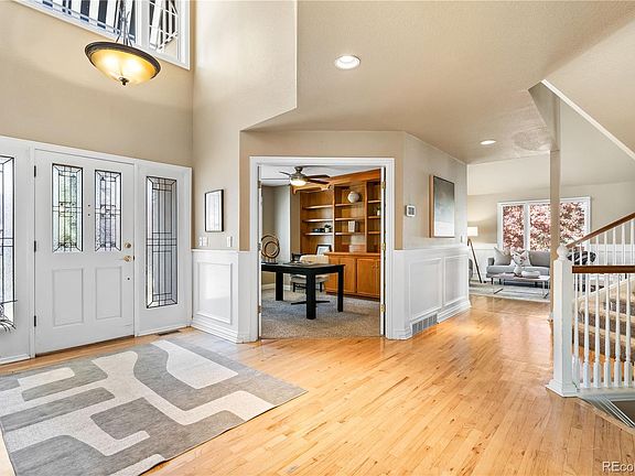 This is a very rare opportunity to own in the desirable Thraemoor neighborhood where only one or two properties are sold each year. You're just minutes from the gorgeous reserve of Ward Reservoir offering stunning views, wildlife and walking/bike paths as well as the bustling Belmar Shopping District with amazing restaurants, activities and botiques! This beautifully maintained 4-bedroom, 4-bathroom home sits on a spacious corner lot. As you step through the inviting foyer, you'll immediately feel the warmth and charm this home exudes. The main level features a thoughtfully designed layout with formal and informal living rooms, offering direct access to the serene back patio—perfect for entertaining or relaxing. The chef's kitchen boasts stainless steel appliances, abundant counter space, and a seamless flow into the eat-in dining area, all accented by gleaming hardwood floors. A dedicated office with custom built-ins provides a quiet space for work or study. Upstairs, the luxurious primary suite is a true retreat. It includes a sitting area, a double-sided fireplace, and a wine fridge with a bar. The 5-piece bathroom is spa-like, featuring a large soaking tub, separate shower, and dual vanities. This suite is the epitome of comfort and style. Two additional bedrooms and a full bathroom round out the upper level, offering plenty of space for family or guests. The finished basement adds even more versatility, featuring a fourth bedroom, another full bathroom, and an expansive entertainment area with a wet bar—perfect for hosting game nights or movie marathons. Outside, the meticulously landscaped yard and large patio create a private oasis, ideal for enjoying Colorado's beautiful weather year-round. This home combines elegance, functionality, and a prime location in one of Lakewood’s most sought-after neighborhoods. Don't miss the opportunity to make it yours!