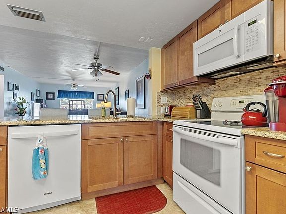 PRICE REDUCTION --- SELLER IS MOTIVATED 55+ community- Beautifully 1st floor FULLY FURNISHED & updated condo with a LOW HOA fee. Tile floors throughout, wood cabinets with soft close doors and granite counter tops make this gorgeous condo virtually maintenance free. Brand new AC & hot water tank in 2022. All of the windows have been replaced with impact resistant, hurricane rated glass so there is no need to worry about the weather & a new roof. Situated just steps from the pool, this is the perfect spot to enjoy the sunny Florida lifestyle. Centrally located within minutes/walking distance to shopping, restaurants, downtown Cape Coral and Fort Myers just minutes away. This is the perfect home for full time or seasonal living. Are you ready for your new Florida lifestyle living? Don't miss this adorable condo. It's waiting for you to call it home! AGENTS SEE REMARKS